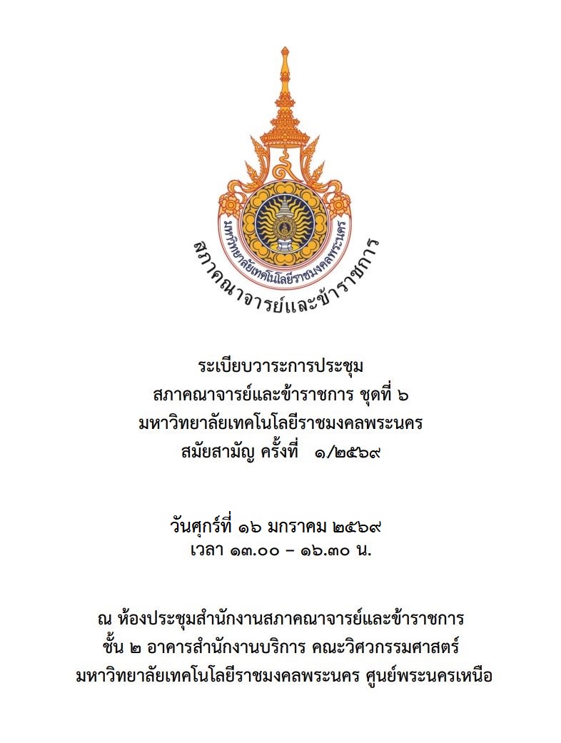 | ๑/๒๕๖๙ | ศุกร์ที่ ๑๖ มกราคม ๒๕๖๙ | การประชุม | รายงานการประชุม | ภาพ |
